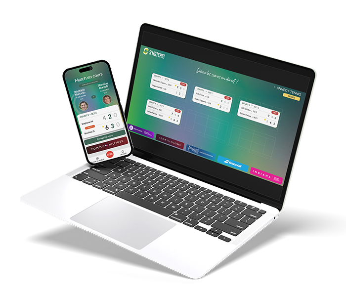 Gagner des jeux, des sets et des matchs, c’est encore mieux quand on peut le partager ! S’MATCHS! permet de diffuser en direct les scores d’un match de tennis et de padel à sa communauté : ses proches, ses fans, son coach, au juge-arbitre, … à qui vous voulez !